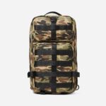 Camouflage print multi-pocket crossbody bag. Strap detail at exterior.